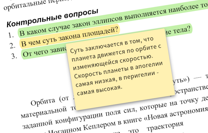 Всплывающие примечания - это один из интерактивных элементов, реализованных в оболочке Оазис-Пресс. Примечания позволяют скрыть от студента небольшой фрагмент информации и показать его только при щелчке мыши по заранее выделенному тексту или пиктограмме. Подобные интерактивные элементы удобны в качестве проверочных вопросов, позволяющих учащемуся прочитать вопрос, обдумать собственный ответ, а затем сравнить его со скрытым правильным ответом.