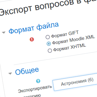 Если у вас уже есть курс Moodle и вами уже создан банк тестовых вопросов, то вы можете просто экспортировать его полностью или несколькими частями (например по темам). Полученные файлы формата XML могут быть присоединены к созданному в Оазис-Пресс макету и позволят пользователям осуществлять самопроверку по предложенным вопросам.